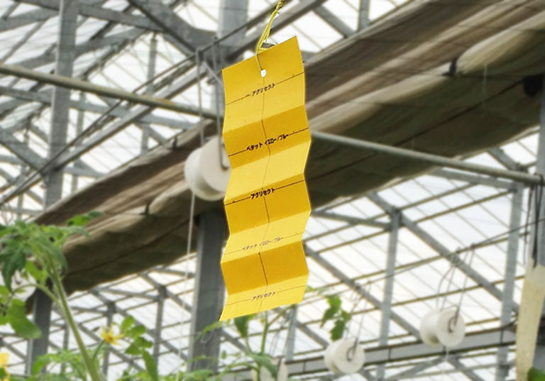 害虫を色で引きつけて粘着剤で捕える紙製捕虫資材です。